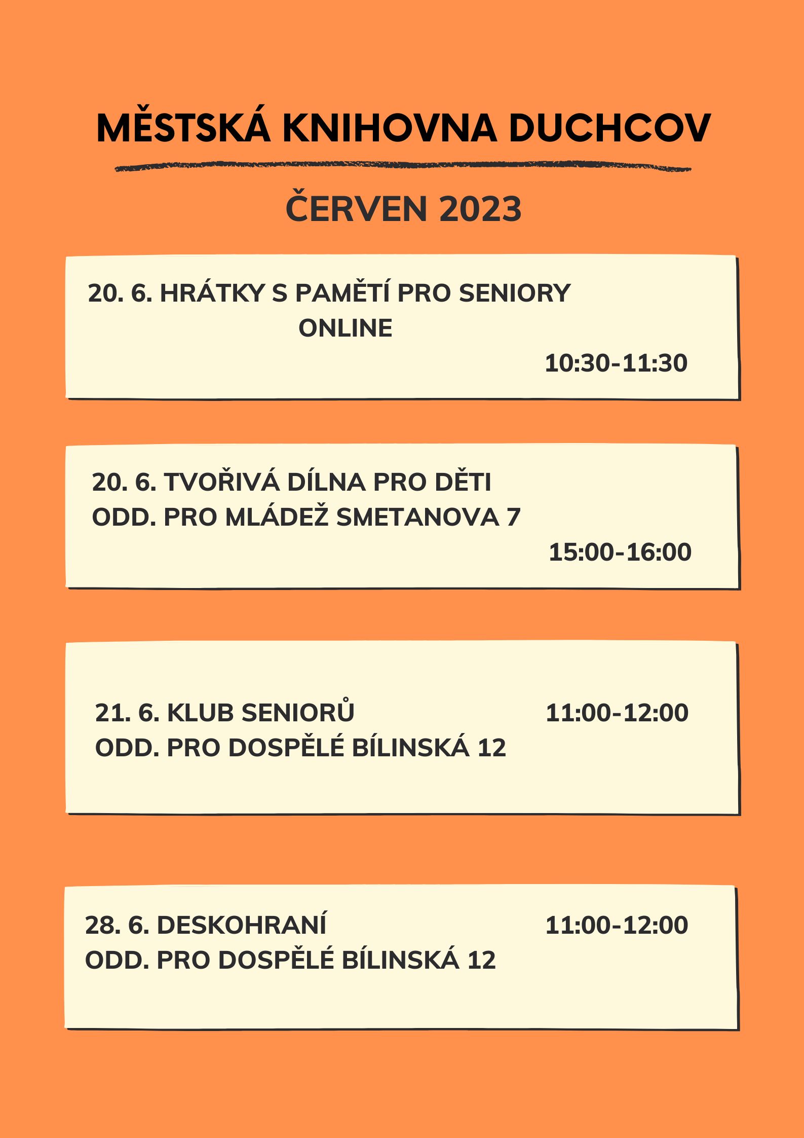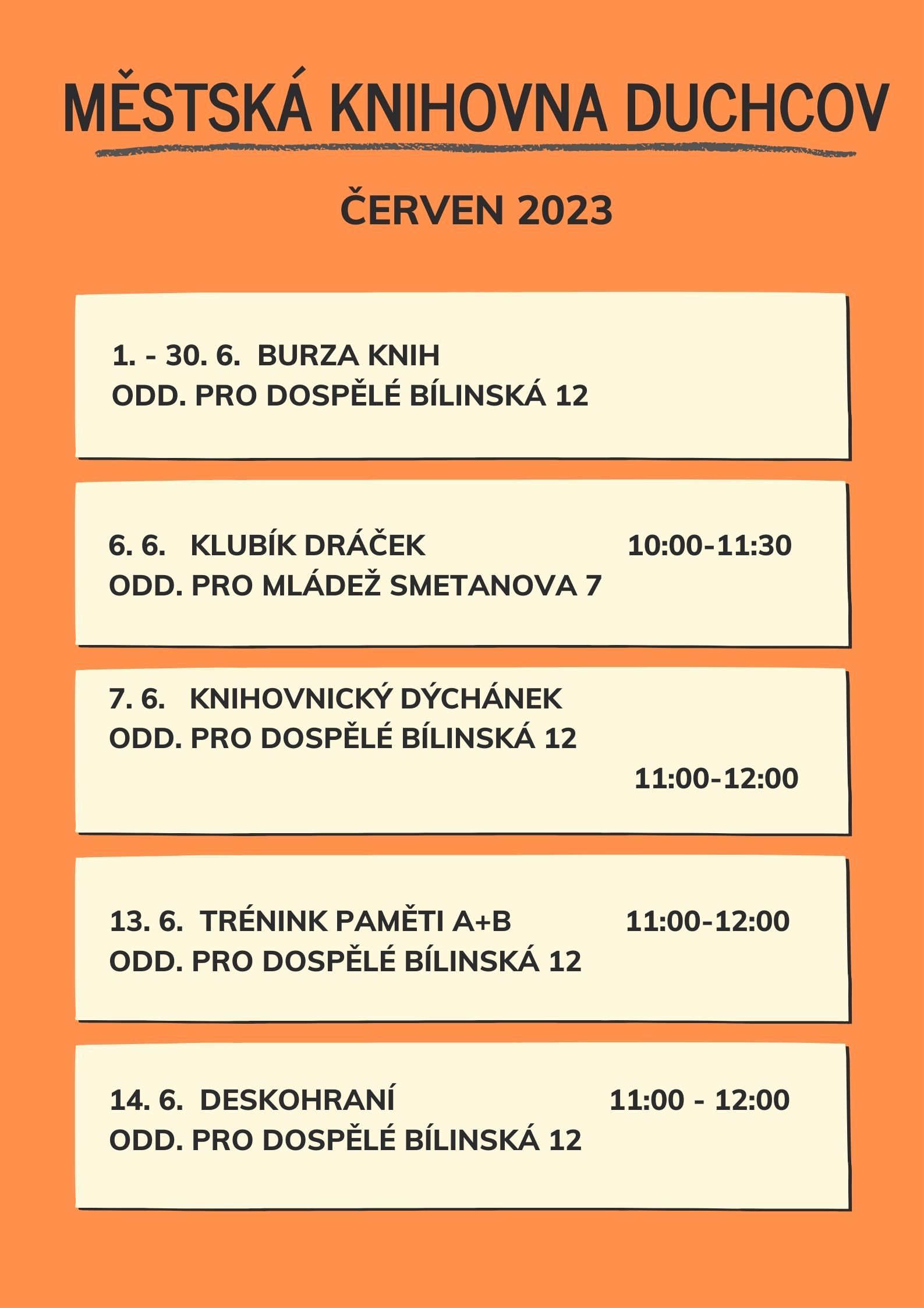MĚSTSKÁ KNIHOVNA DUCHCOV - PLÁN AKCÍ ČERVEN 2023